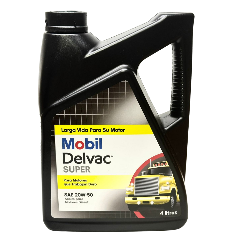 Mobil Delvac Super 20W-50 es un aceite de alto rendimiento para motores de servicio pesado que proporciona una protección probada a los motores diésel que operan en aplicaciones de servicio severas en y fuera de carretera. Mobil Delvac Super 20W-50 es recomendado por ExxonMobil para utilizarse en una amplia gama de aplicaciones de servicio pesado y en los ambientes operativos que se encuentran en las industrias de acarreo en camiones, minera, de la construcción, de explotación y agrícolas. También es apto para motores de gasolina.