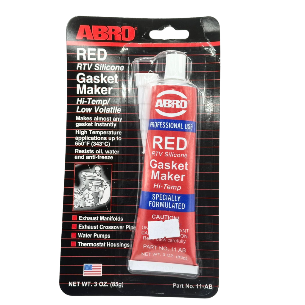 La silicona roja ABRO, también conocida como «Gasket Maker RED», es un sellador de alta temperatura diseñado para aplicaciones automotrices.